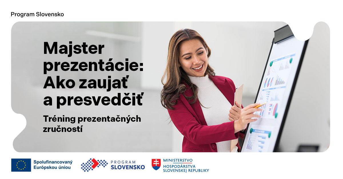Profesionálne zvládnuté prezentačné zručnosti sú dnes nevyhnutnosťou. Či už chcete predať seba, produkt alebo firmu. Príďte na naše bezplatné podujatie a vyšperkujte svoj prejav i značku do dokonalosti – slovami, ktoré majú váhu, a gestami, ktoré hovoria za vás.